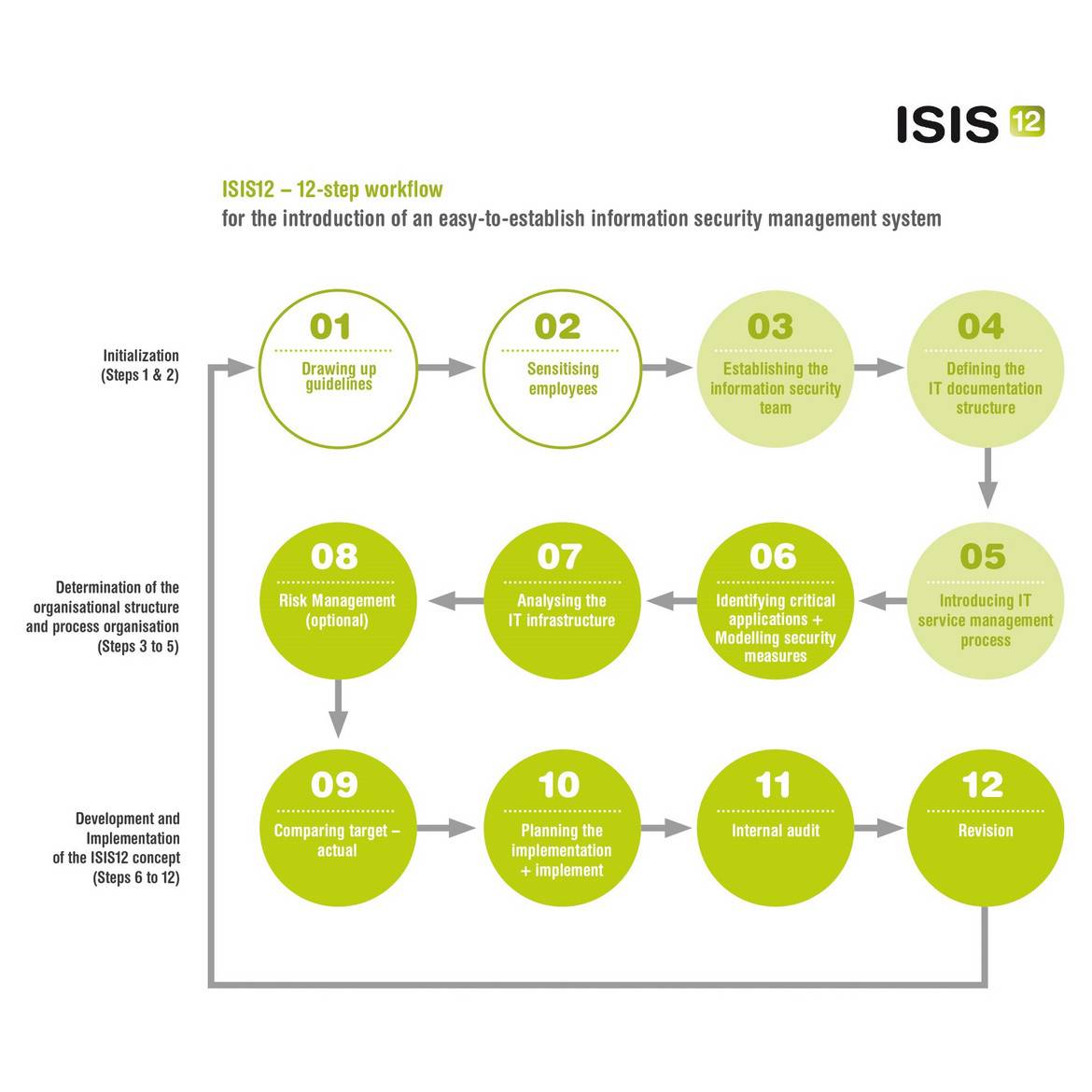 As a practical alternative to established large-scale and internationally approved standards for implementations of management systems for information systems – like ISO/IEC 27001 or the German baseline security standard (BSI IT-Grundschutz) – the IT-Security Cluster has designed an alternative especially focused on small and medium sized enterprises and organizations (SMEs/SMOs), called “Information Security in 12 Steps” (ISIS12).